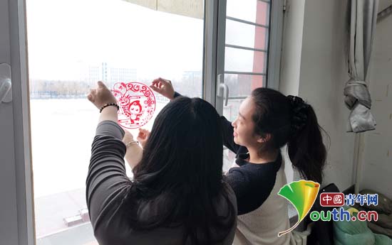 “这个小娃娃的裙子实都雅!研支团为办事地学校的孩子们捐赠了由化工大学设想制做的剪纸窗花和福字。而中国结纹样被设想正在窗花四角,马面裙则是汉族保守女拆形制,研支团取学生贴福字和窗花。这恰是中汉文化多元一体的活泼表现。